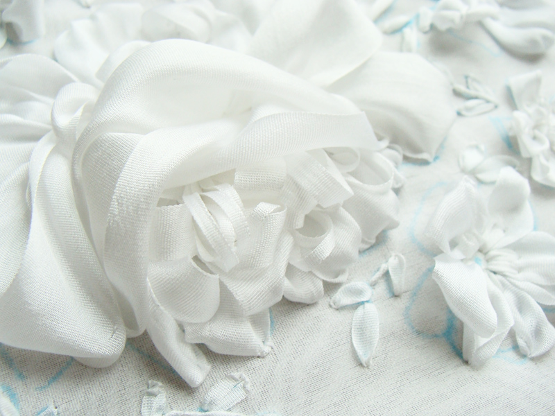 Peonies, roses, sakura blossom, almond bloom or cherry blossom - all these and a lot more amazingly beautiful flowers look so life-like, being stitched in pure silk ribbon. You can also add a symbolic meaning, coding your very best wedding wishes by means of embroidery.